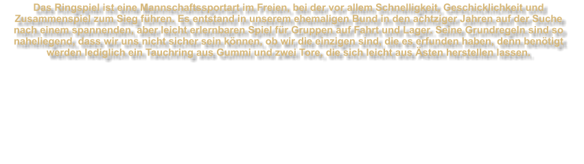 Das Ringspiel ist eine Mannschaftssportart im Freien, bei der vor allem Schnelligkeit, Geschicklichkeit und