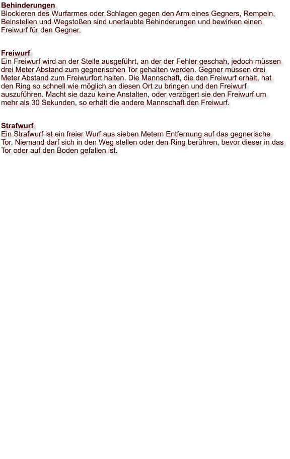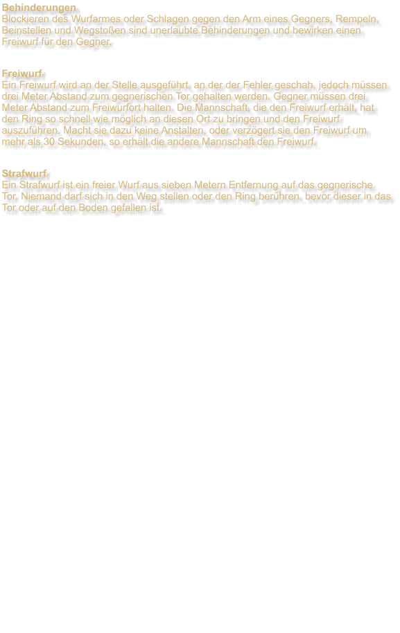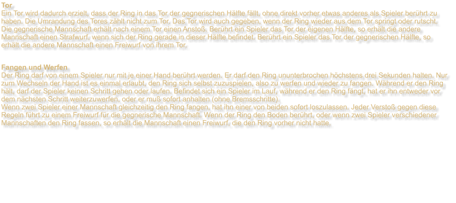 Regeln führt zu einem Freiwurf für die gegnerische Mannschaft. Wenn der Ring den Boden berührt, oder wenn zwei Spieler verschiedener